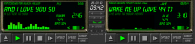 Variante 1 (AutoSwitch): Sie verwenden nur eine Soundkarte und lassen das Programm zwischen linken und rechten Player automatisiert wechseln (mit/ohne Crossfade) ![]() Variante 2: Sie verwenden zwei Soundkarten und spielen Ihre Playlist in einem Player ab. Am andern Player können Sie vorhören und gegebenenfalls die Reihenfolge Ihrer Playlisttitel während des Kurses ändern (mit/ohne Crossfade) ![]() Variante 3: Sie verwenden zwei Soundkarten und spielen 2 Playlisten gleichzeitig = Beschallung von zwei Tanzsälen gleichzeitig (mit/ohne Crossfade) ![]() Natürlich können Sie bei jeder Variante Zusatztitel in die aktuelle Playlist einreihen oder die Playlist während sie spielt verändern! |